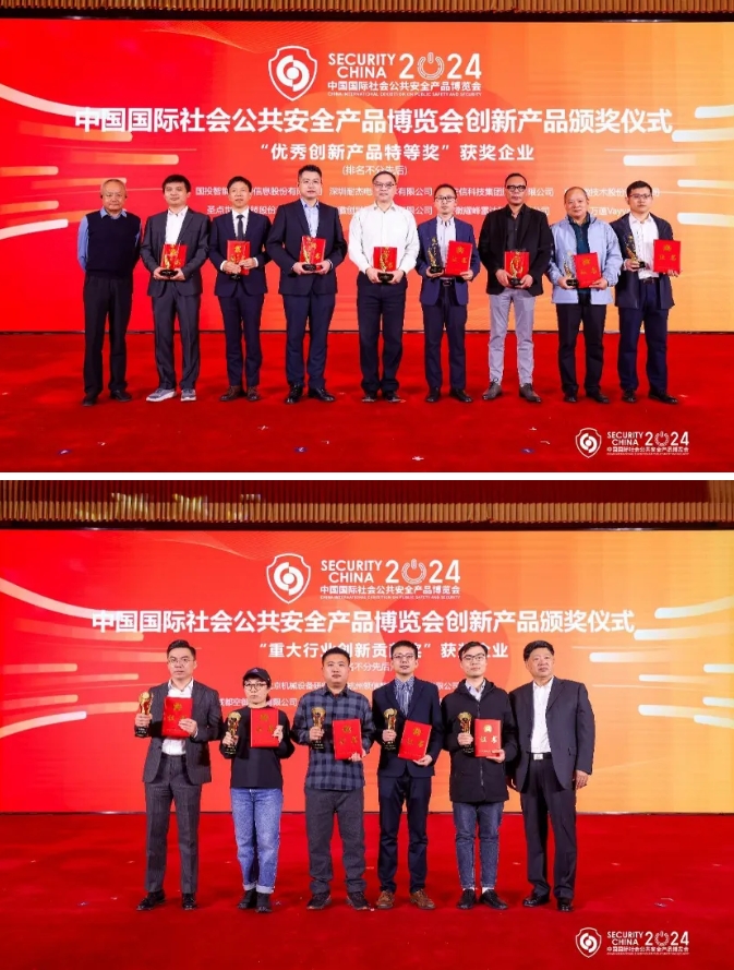 自2006年首次設立"中國國際社會公共安全產(chǎn)品博覽會"創(chuàng)新產(chǎn)品獎項開始,該活動已連續(xù)舉辦了八屆,贏得了企業(yè)的廣泛支持與高度認可。本屆博覽會共有132家參展企業(yè)286款產(chǎn)品參加了創(chuàng)新產(chǎn)品申報活動。經(jīng)過網(wǎng)上初評與現(xiàn)場專家復評,5款產(chǎn)品摘得“重大行業(yè)創(chuàng)新貢獻獎”、16款產(chǎn)品斬獲“優(yōu)秀創(chuàng)新產(chǎn)品特等獎”、41款產(chǎn)品奪得“優(yōu)秀創(chuàng)新產(chǎn)品獎”。公安部科技信息化局原副局長趙林和公安部科信委原副主任劉明芳、公安部科技信息化局原副局長牛晉、公安部科技信息化局原局長厲劍分別為獲得“優(yōu)秀創(chuàng)新產(chǎn)品獎”“優(yōu)秀創(chuàng)新產(chǎn)品特等獎”和“重大行業(yè)創(chuàng)新貢獻獎”的企業(yè)頒獎。